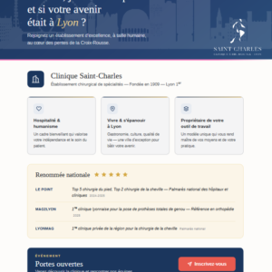 La Clinique Saint Charles de Lyon est un établissement chirurgical, de spécialités. Son activité se développe autour de deux services d’hospitalisation et d’un service ambulatoire, à taille humaine pour privilégier les relations et une qualité dans la prise en charge et l’accueil des patients.
