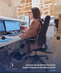 Dans le cadre d’une démarche de prévention des troubles musculo-squelettiques (TMS) et d’amélioration des conditions de travail, la Clinique Saint Charles a équipé les postes du bureau des entrées et du service Accueil Bloc de fauteuils ergonomiques et de repose-pieds.